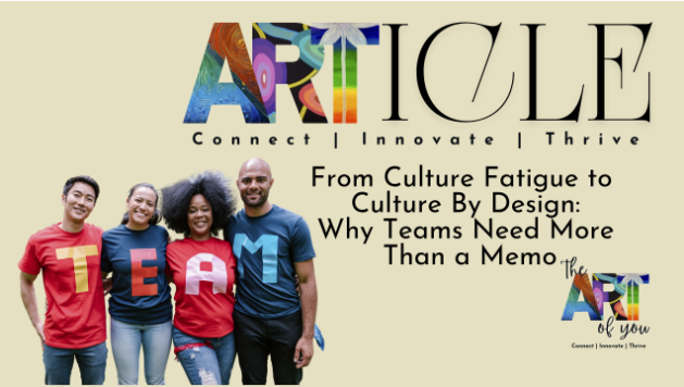 From Culture Fatigue to Culture by Design: Why Teams Need More Than a Memo. In workplaces across the country, teams are running on empty. After waves of change, restructures, and relentless KPIs, many teams are doing their best to show up but underneath, there's tension, disconnection, and fatigue.